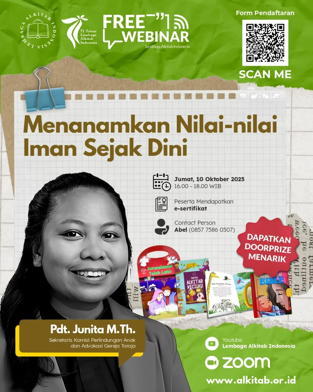 JADWAL ACARA LAI < Oktober 2025 > SeninSelasaRabuKamisJumatSabtuMinggu 1 2 3 4Apakah Paulus Pendiri Agama Kristen? - Seminar AlkitabApakah Paulus Pendiri Agama Kristen? - Seminar AlkitabTime: 4:00 pm - 5:30 pmSetidaknya ada 7 tulisan Paulus yang tercatat dalam Perjanjian Baru. Banyak dari tulisannya mendominasi ajaran kekristenan dewasa ini. Apa yang melatarbelakangi Paulus menulis banyak surat? Bagaimana Paulus bisa memengaruhi umat melalui tulisannya? Dan benarkah Paulus yang mendirikan kekristenan melalui tulisan-tulisannya? 5 6 7 8 9 10Menanamkan Nilai-Nilai Iman Sejak Dini - Free WebinarMenanamkan Nilai-Nilai Iman Sejak Dini - Free WebinarTime: 4:00 pm - 6:00 pmPerkembangan zaman yang semakin pesat di era digital saat ini membawa berbagai dampak bagi kehidupan anak-anak, baik positif maupun negatif. Paparan informasi yang begitu mudah diakses tanpa filter dapat memengaruhi pola pikir, sikap, dan perilaku anak sejak usia dini. Oleh karena itu, penting bagi orang tua, pendidik, dan masyarakat untuk memperkuat fondasi keimanan dalam diri anak sebagai bekal dalam menghadapi tantangan zaman. Menanamkan nilai-nilai iman sejak dini merupakan langkah strategis dalam membentuk karakter anak sesuai dengan iman Kristen dalam Alkitab, mulai dari bagaimana anak memperlakukan dirinya sendiri hingga sesamanya. Dalam prosesnya, perlu campur tangan pihak orang tua serta tenaga pendidik sebagai lingkungan pertama mereka dalam mengenal iman Kristen dan teladannya. Seberapa penting nilai-nilai iman dalam pertumbuhan anak? Bagaimana cara menanamkan nilai-nilai iman tersebut? 11Inkulturasi Alkitabiah dalam Gereja Katolik -Seminar AlkitabInkulturasi Alkitabiah dalam Gereja Katolik -Seminar AlkitabTime: 4:00 pm - 5:30 pmInkulturasi Alkitabiah dalam Gereja Katolik merupakan proses pewartaan Sabda Allah yang berupaya untuk menerjemahkan pesan Kitab Suci ke dalam konteks budaya lokal. Tujuannya adalah agar iman Kristiani dapat dihayati secara otentik oleh umat dalam realitas sosial dan budaya mereka sendiri. Dasar pemikiran ini secara teologis ditegaskan dalam dokumen-dokumen Konsili Vatikan II, khususnya Gaudium et Spes dan Ad Gentes. Kedua dokumen tersebut menekankan pentingnya pewartaan Injil yang tidak terlepas dari keragaman budaya manusia. Gereja dipanggil untuk menghormati serta mengintegrasikan unsur-unsur kebudayaan ke dalam kehidupan iman, sejauh unsur-unsur tersebut tidak bertentangan dengan ajaran Kristus. Namun, dalam pelaksanaannya, inkulturasi Alkitabiah tidak lepas dari berbagai tantangan. Salah satu yang utama adalah risiko terjadinya sinkretisme, yaitu pencampuran ajaran iman dengan unsur budaya yang justru menyimpang dari kebenaran Injil. Hal ini dapat membahayakan kemurnian iman Kristiani dan bahkan berpotensi mengaburkan inti ajaran Katolik itu sendiri. 12 13 14 15 16ISRAEL-PALESTINA DAMAI: TEPATKAH? - Bincang AlkitabISRAEL-PALESTINA DAMAI: TEPATKAH? - Bincang AlkitabTime: 2:00 pm - 3:30 pmBeberapa hari ini, seluruh dunia bernafas lega karena dua tahun perang antara Israel dan Hamas di Gaza telah berakhir. Tapi apakah permusuhan ratusan tahun ini akan benar-benar berakhir dengan ini? Atau sebenarnya ada cara yang lebih terjamin, yaitu dengan membiarkan salah satu diantara israel dan Hamas ada yang benar-benar kalah? Jadi sudah tepatkah Israel dan palestina berdamai sekarang ini? Bagaimana kata Alkitab? Mari kita saksikan perbincangan menarik ini dalam Bincang Alkitab besok Kamis, 16 Oktober 2025, Live Streaming di kanal Youtube Indonesia, pukul 14.00 WIB bersama Bp. Tri Harmadji, Ph.D. 17 18 19 20 21 22 23 24 25 26 27 28 29 30Mari Makan - Dinamika Peran Makanan dalam Narasi Kejadian 37Mari Makan - Dinamika Peran Makanan dalam Narasi Kejadian 37Time: 2:00 pm - 3:00 pmMelanjutkan topik makanan dari perspektif yang berbeda, bincang Alkitab kali ini mengangkat dinamika peran makanan dalam teks Alkitab khususnya di kitab Kejadian. Mari makan adalah ajakan lazim dalam budaya Indonesia yang mengundang orang lain untuk ikut makan bersama, keramahan atau sekedar pemberitahuan. Namun di dalam narasi Alkitab, kita akan menemukan dinamika lainnya yang berbeda. Makanan memiliki peran penting dalam narasi kisah Yusuf yang berisi gambaran-gambaran berkas gandum, mimpi juru minuman dan mimpi juru roti tentang minuman dari anggur dan berbagai makanan, bagaimana saudara-saudaranya pergi ke Mesir untuk mendapatkan makanan dan lain sebagainya. Di satu sisi makanan pada umumnya dimaknai sebagai pemenuhan kebutuhan jasmani tetapi di sisi lain makanan bisa saja menyiratkan kuasa maupun rekonsiliasi. Kita akan mendalami tema ini lebih jauh dalam bincang Alkitab. Bersama Bu Lady Mandalika, Ph.D., kita akan mengulik lebih dalam terkait fenomena dan diskusi ini. Besok kamis, tayang premiere di kanal Youtube Lembaga Alkitab Indonesia, pukul 14.00 WIB. Jangan terlewat! Salam #alkitabuntuksemua 31 Categories Zoom Live Youtube Onsite